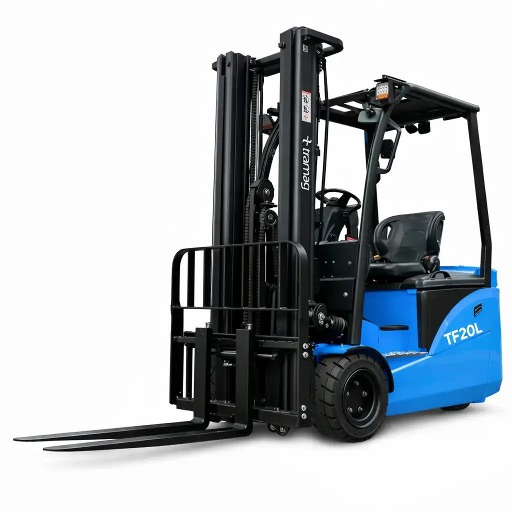 De Tramag TF20L is een compacte 3-wiel elektrische heftruck met een hefvermogen van 2000 kg. Ideaal voor smalle gangpaden en magazijnwerk, dankzij een korte draaicirkel, ergonomische cabine en duurzame Li-ion batterij. Veilig, krachtig en efficiënt voor dagelijks gebruik in logistiek en productie.