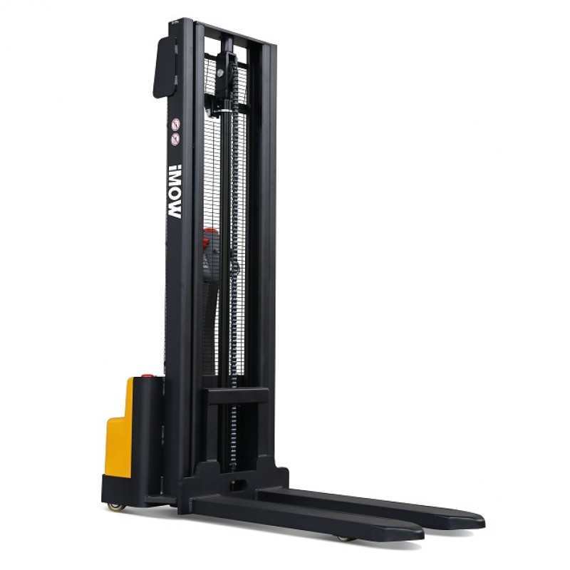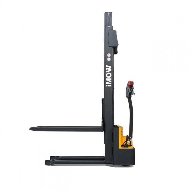 Imow EST101 ⚫ hefvermogen 1000 kg ⚫ hefhoogte 2700 of 3300 mm ⚫ elektrische meeloopstapelaar ⚫ vorken 1150 x 570 mm ⚫ 24V/85Ah AGM-batterij
