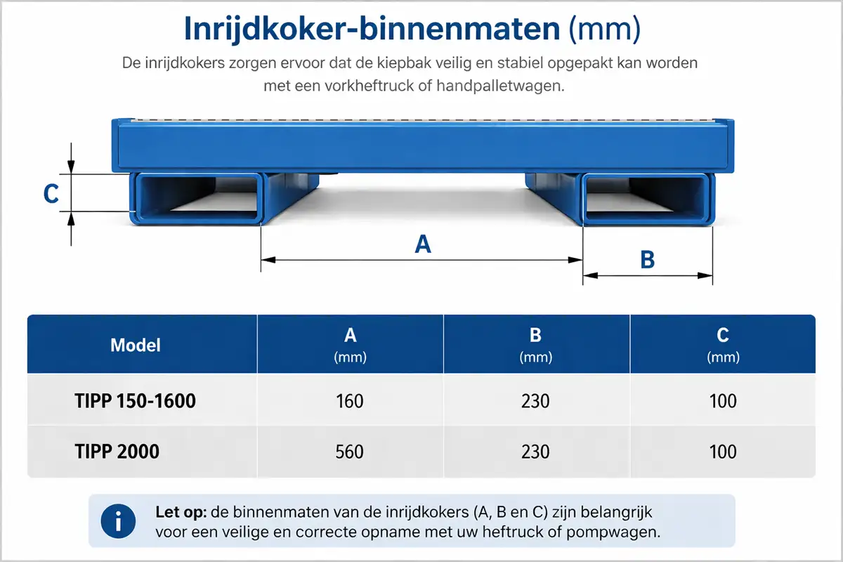 - Deze kiepcontainer is alleen verkrijgbaar in standaardmaten.